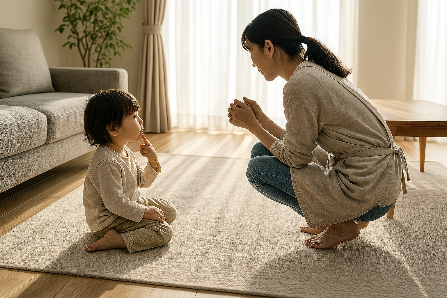 すると、子どもの姿がしっかり見えるようになり、安心しておもちゃ遊びをさせられるように。