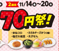 人気メニューが、なんと全品70円で注文できちゃいます!!