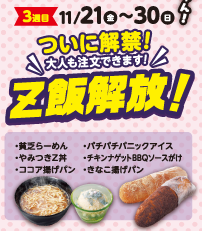 第三週目は、高校生・大学生・短大生・専門学生グループ限定メニューの“Z飯”が解放!
