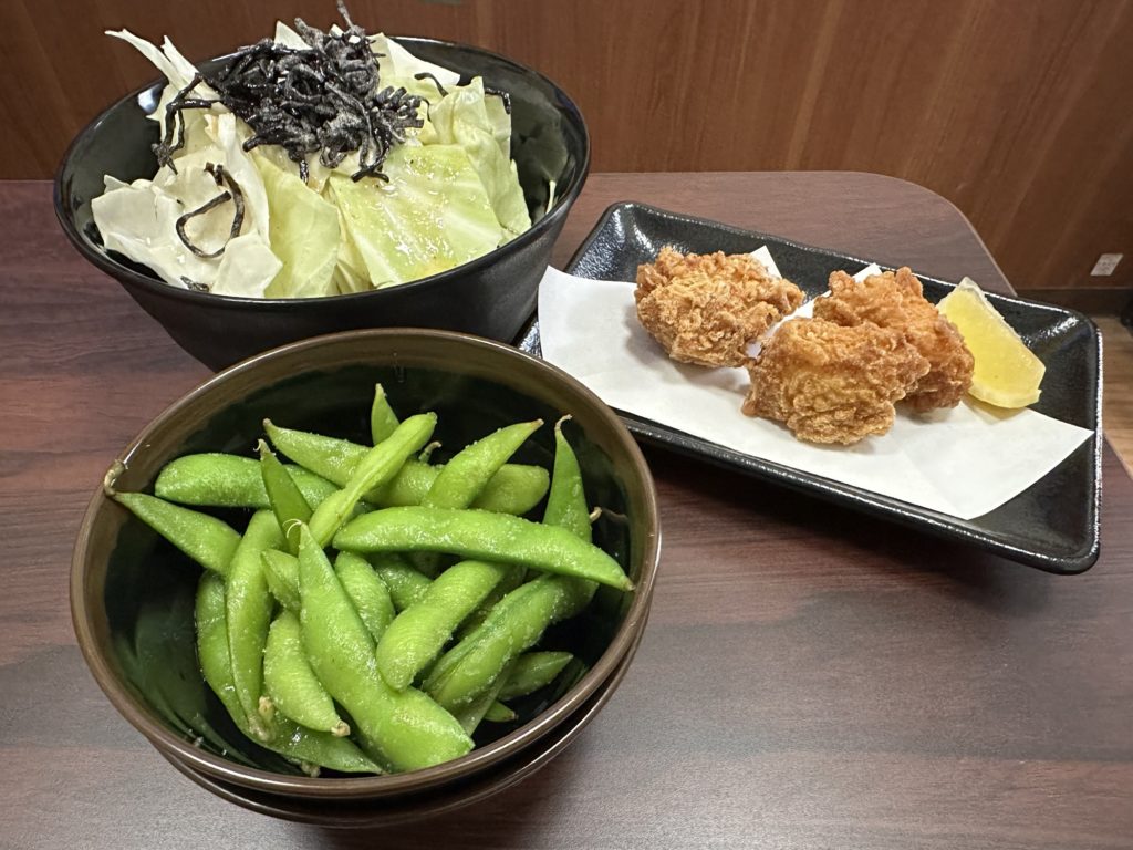 「塩だれキャベツ」「から揚げ(3個)」「枝豆」を注文してみたところ、