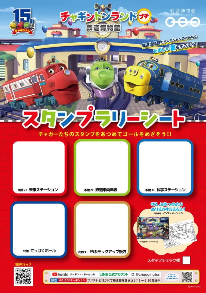 館内5か所にある「チャギントンオリジナルスタンプ」をすべて集めると、「オリジナルぬりえ」がもらえます。